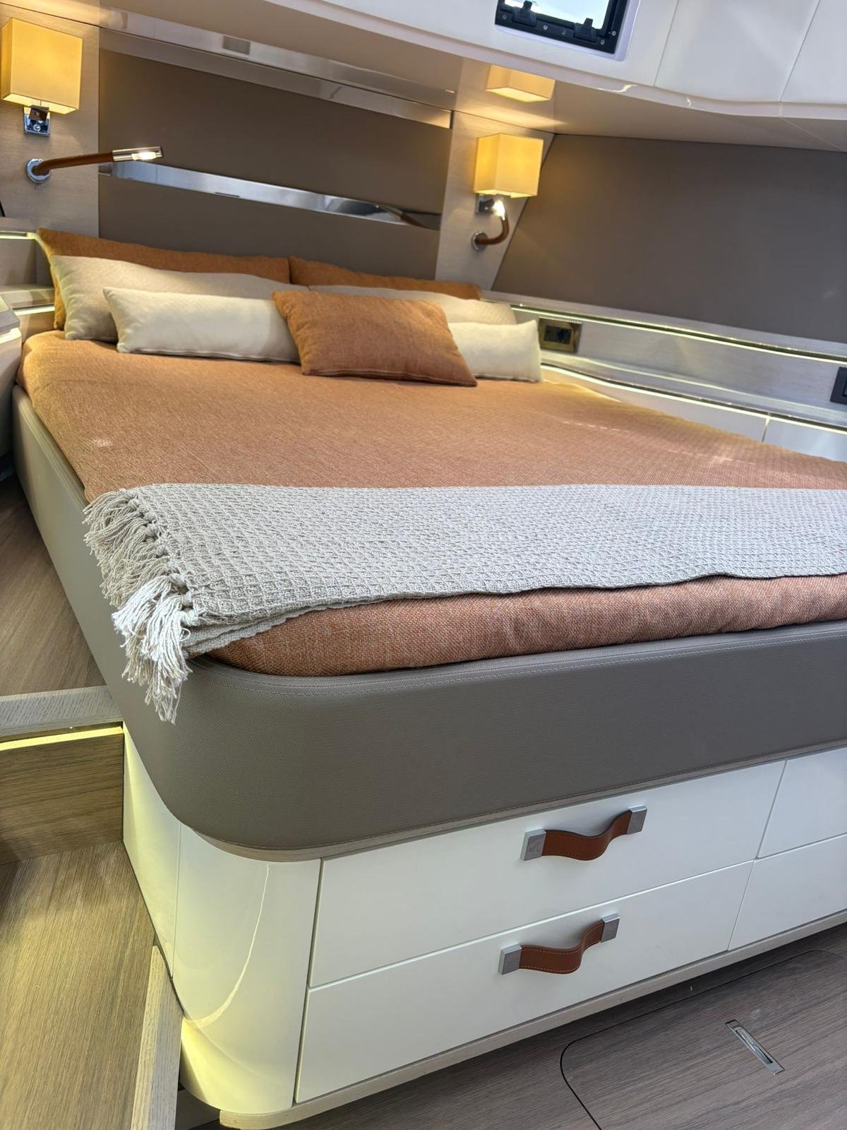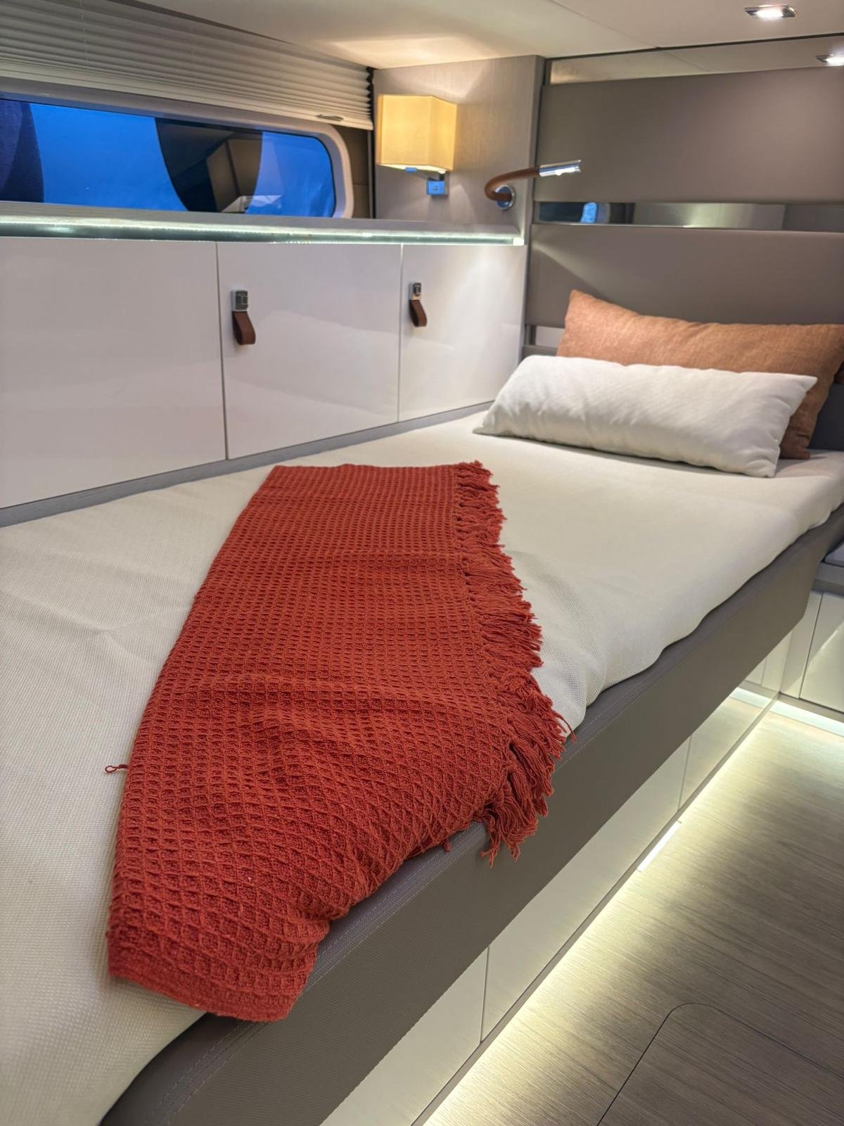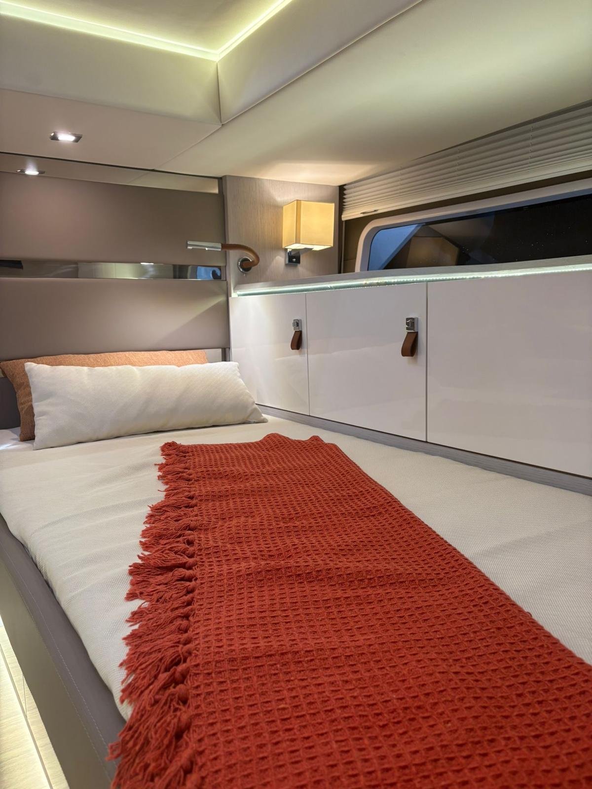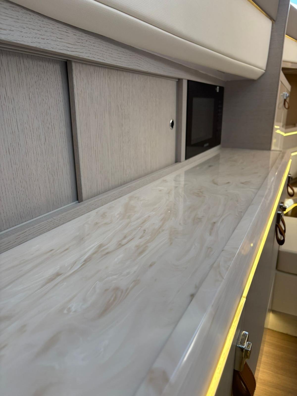 La Level 43 ST es una embarcación de 13,5 metros pensada para quienes buscan un equilibrio perfecto entre diseño, confort y prestaciones. Su amplia cubierta, con alas laterales hidráulicas que amplían el espacio en fondeo, se combina con una plataforma de baño sumergible y un garaje para tender, ofreciendo soluciones prácticas y exclusivas. En el interior, los acabados de alta calidad y la posibilidad de configurar cabinas y materiales permiten adaptarla a cada estilo de navegación, ya sea para escapadas familiares o salidas con amigos. Potente, elegante y versátil, la Level 43 ST convierte cada travesía en una experiencia única de lujo sobre el mar.
