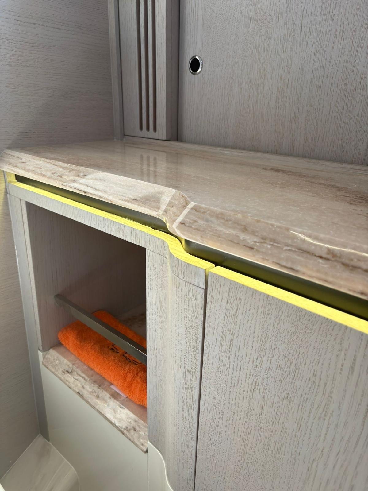 TV especial con super brillo escamoteada en wetbar 55″ con doble pedestal eléctrico.