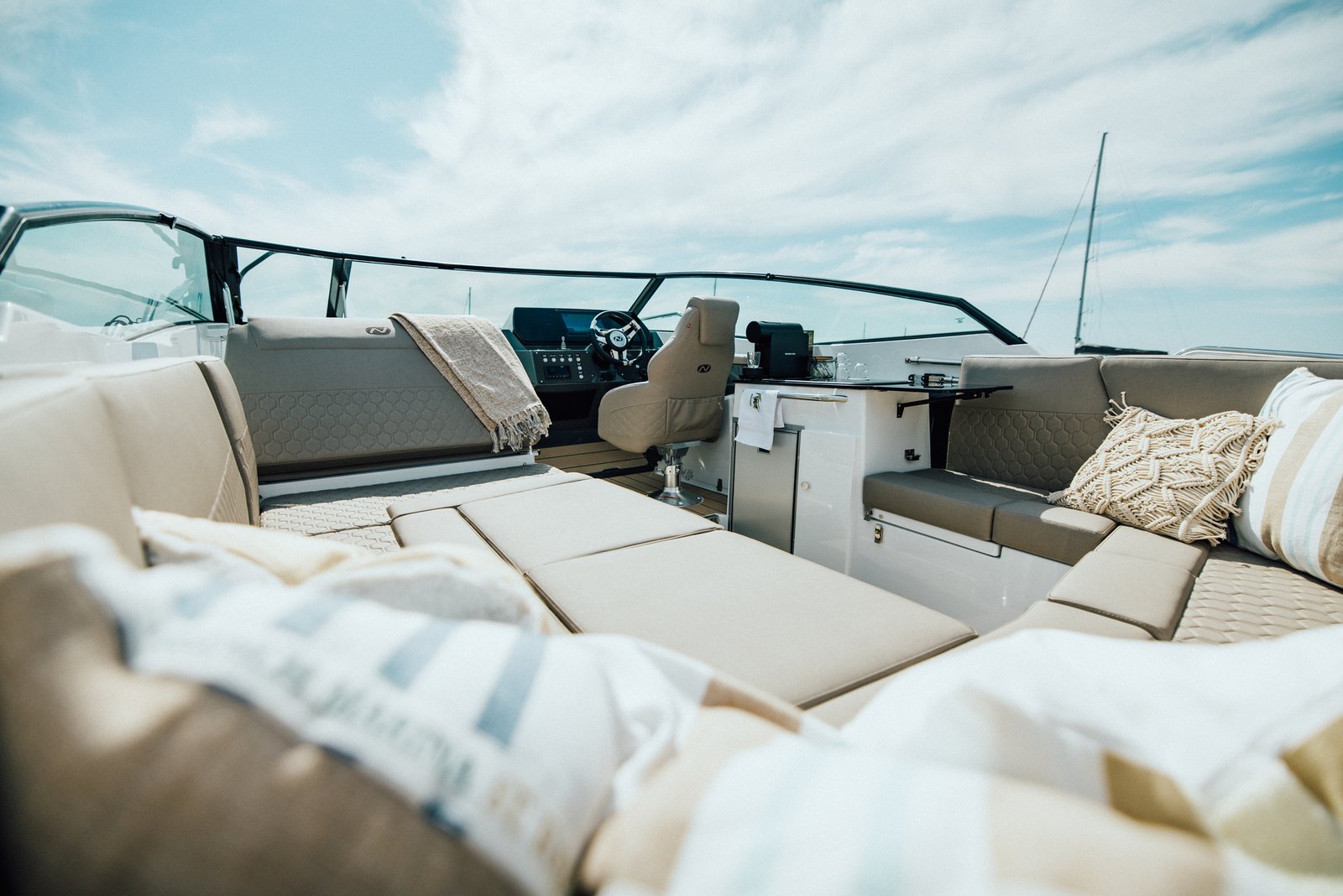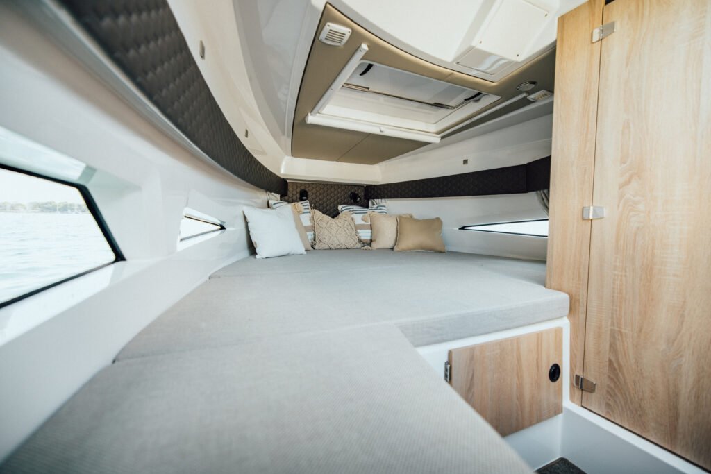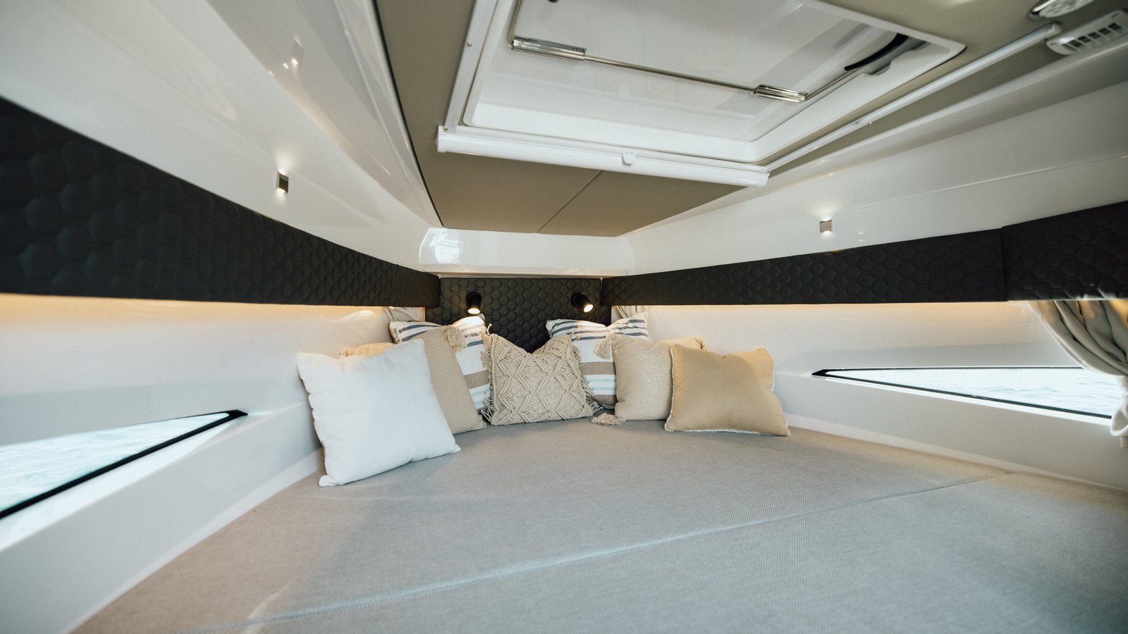 Desde su amplia entrada a la cabina y su escalera bien diseñada hasta su versátil sistema de ventilación, el Noblesse 830 prioriza tanto la facilidad de uso como la comodidad a bordo. Las tumbonas sirven de respaldo funcional durante el día y permiten una circulación óptima del aire por la noche, garantizando un entorno perfecto para la relajación.