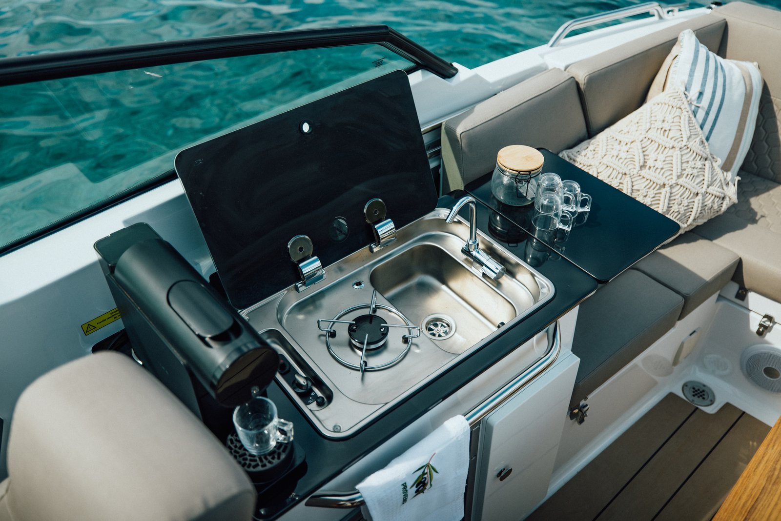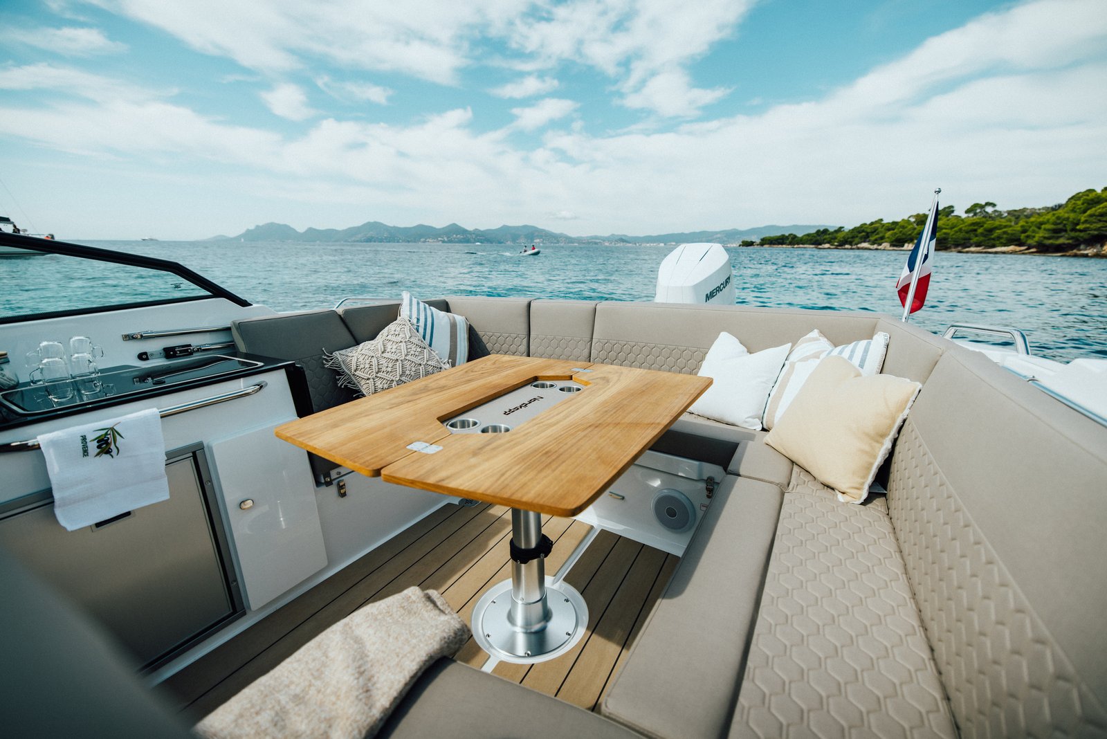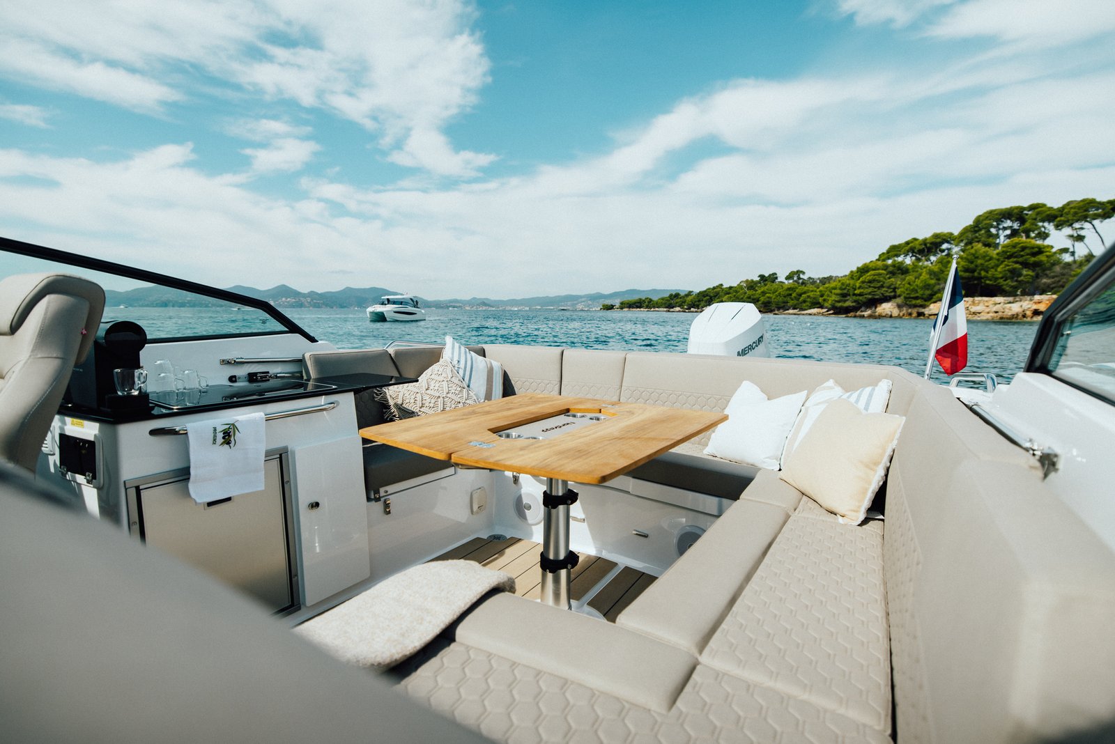 Desde su amplia entrada a la cabina y su escalera bien diseñada hasta su versátil sistema de ventilación, el Noblesse 830 prioriza tanto la facilidad de uso como la comodidad a bordo. Las tumbonas sirven de respaldo funcional durante el día y permiten una circulación óptima del aire por la noche, garantizando un entorno perfecto para la relajación.